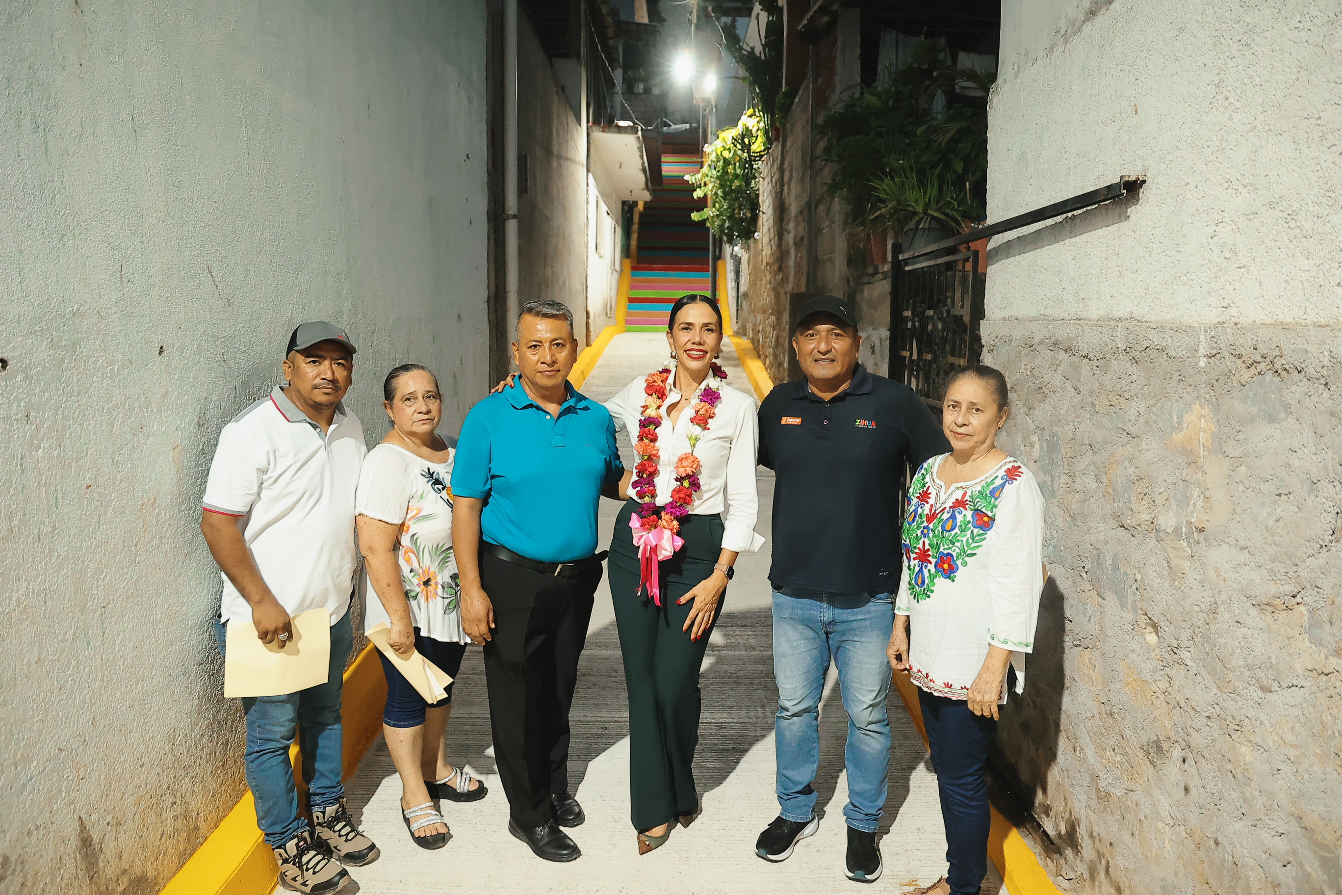La presidenta Lizette Tapia Castro visitó este martes la colonia 24 de Abril, donde en compañía de integrantes del Cabildo y directores municipales, encabezó la inauguración del andador Diamante, una obra esperada por muchos años por las familias del lugar.