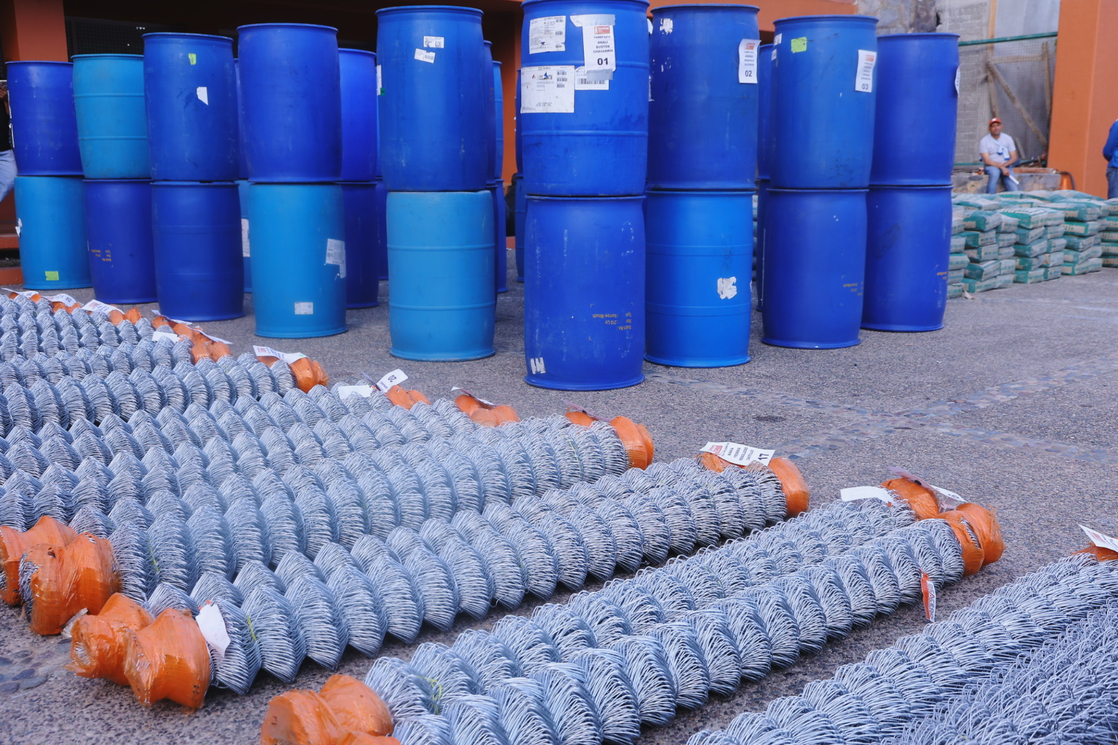 Los materiales y enseres para el hogar que se entregaron fueron paquetes de cemento, lámina galvanizada, tinacos de 1,200 y 2,100 litros, tambos azules de 200 litros, muebles para baño con WC y lavabo, malla ciclónica, impermeabilizante, pintura blanca, camas individuales y matrimoniales con colchón y almohadas, estufas y lavadoras.