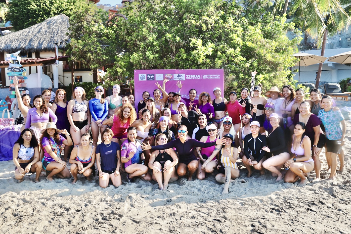 Hoy domingo, en la playa La Ropa, se llevó a cabo la segunda remada de paddel, en la que se reunieron cerca de 100 mujeres con sus respectivas tablas para el cruce a la playa Las Gatas.
