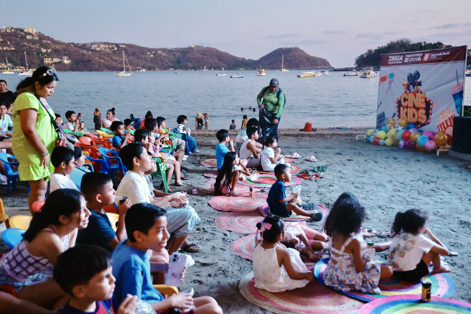 Cumpliendo con el programa planeado para el festival del periodo vacacional de Semana Santa, la presidenta Lizette Tapia Castro, a través de la Dirección de Desarrollo Social y Humano, a cargo de Bernardo Benjamín Sánchez, realizó el evento Cine en la Playa para beneficio y diversión de niñas y niños, tanto locales como visitantes, que están de vacaciones.