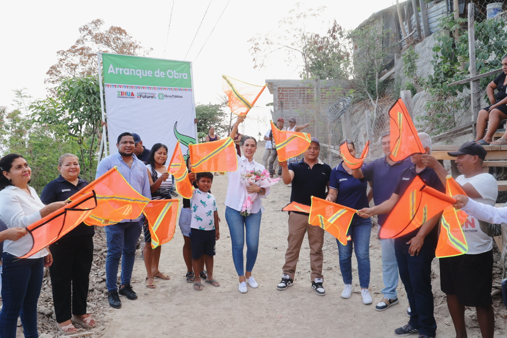 En una jornada de diversas actividades y cumpliendo con lo planeado para dotar de una mejor infraestructura a las colonias y comunidades del municipio, la presidenta Lizette Tapia Castro llegó a la colonia Ampliación Buenos Aires, ubicada en la parte alta del municipio, para dar el banderazo de arranque a la obra de pavimentación de la calle principal de la mencionada colonia.