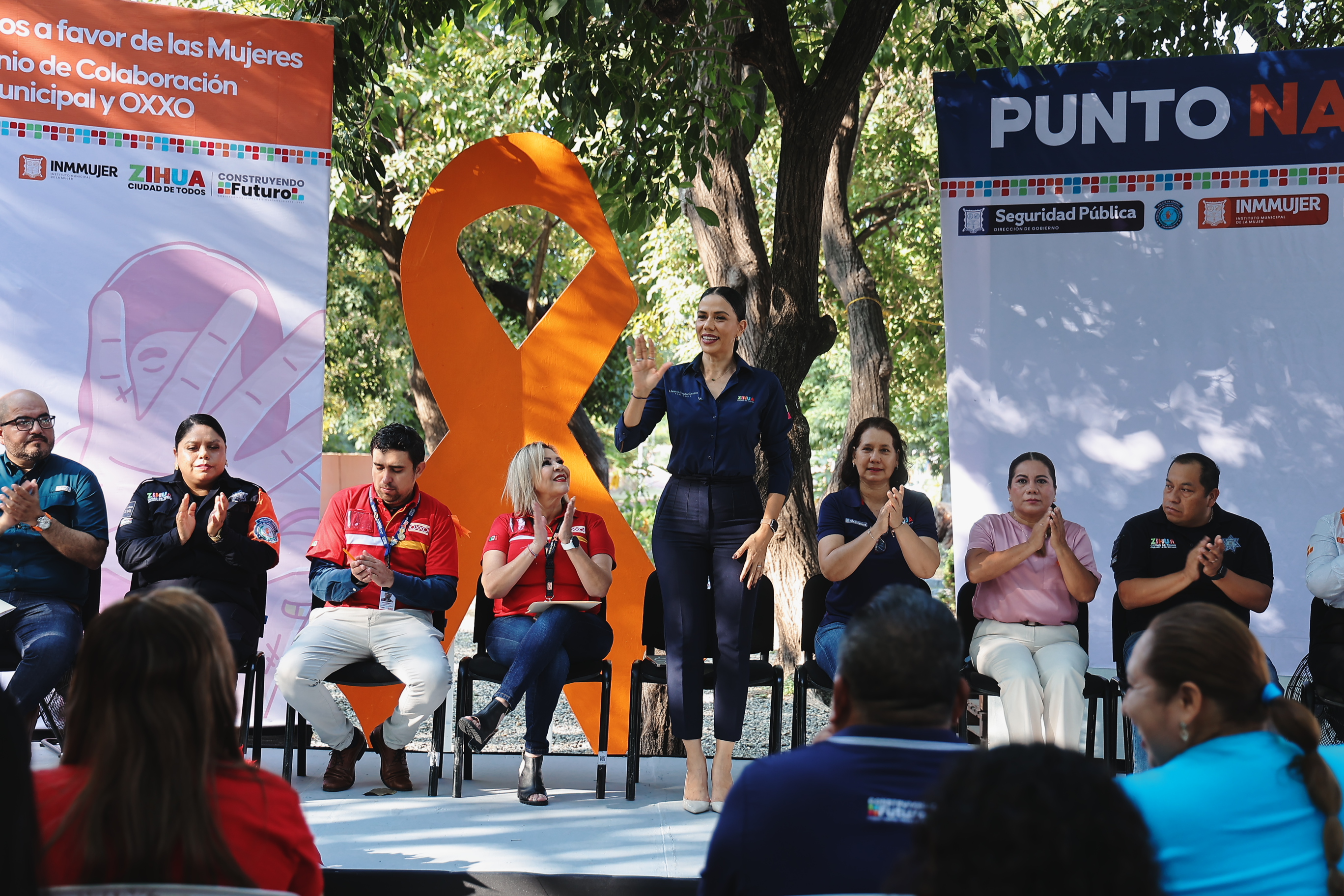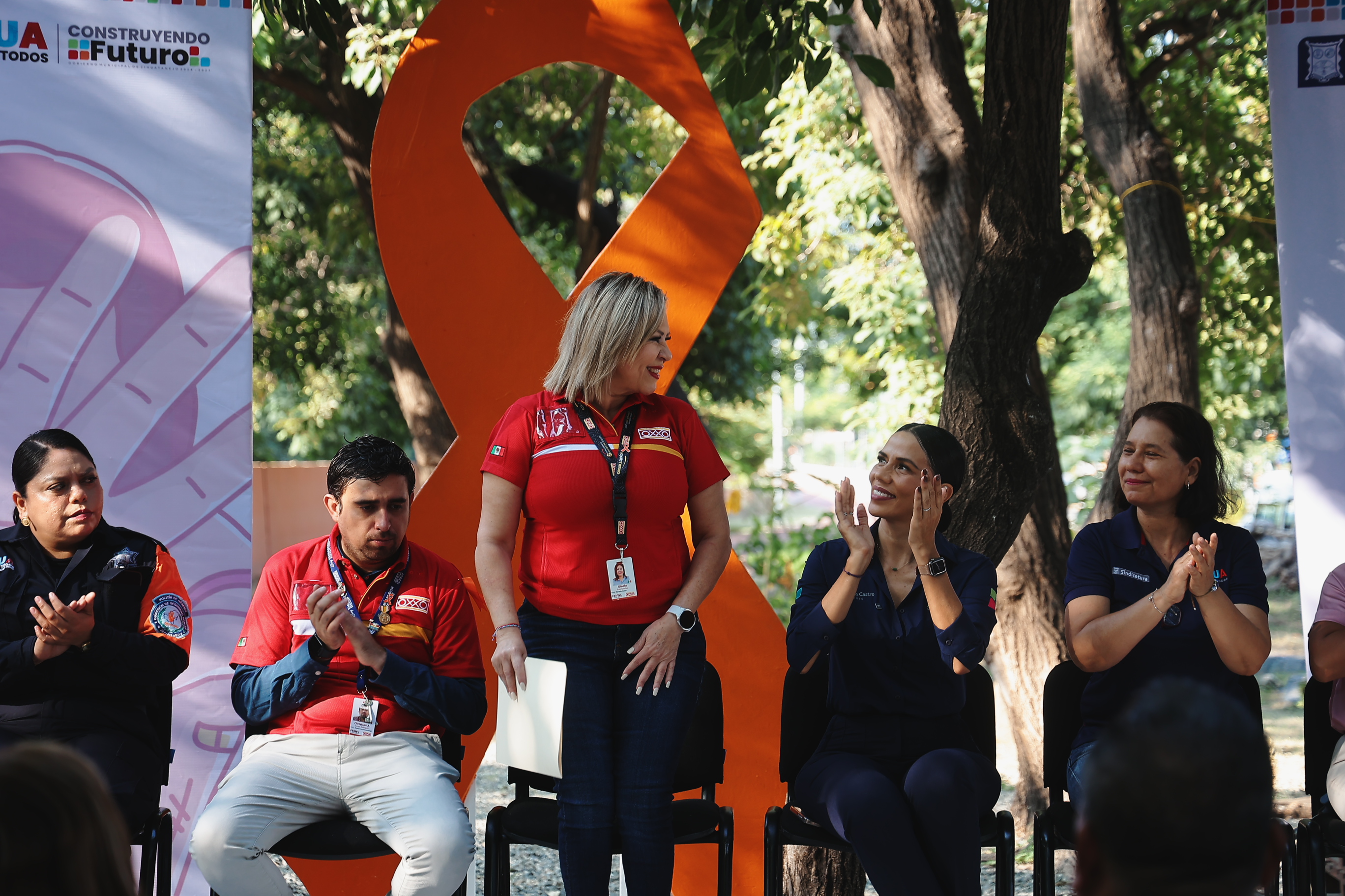Al término del evento, se llevó a cabo la instalación oficial del Punto Naranja en el acceso principal de la Tienda OXXO ubicada frente a la Plaza Kioto.