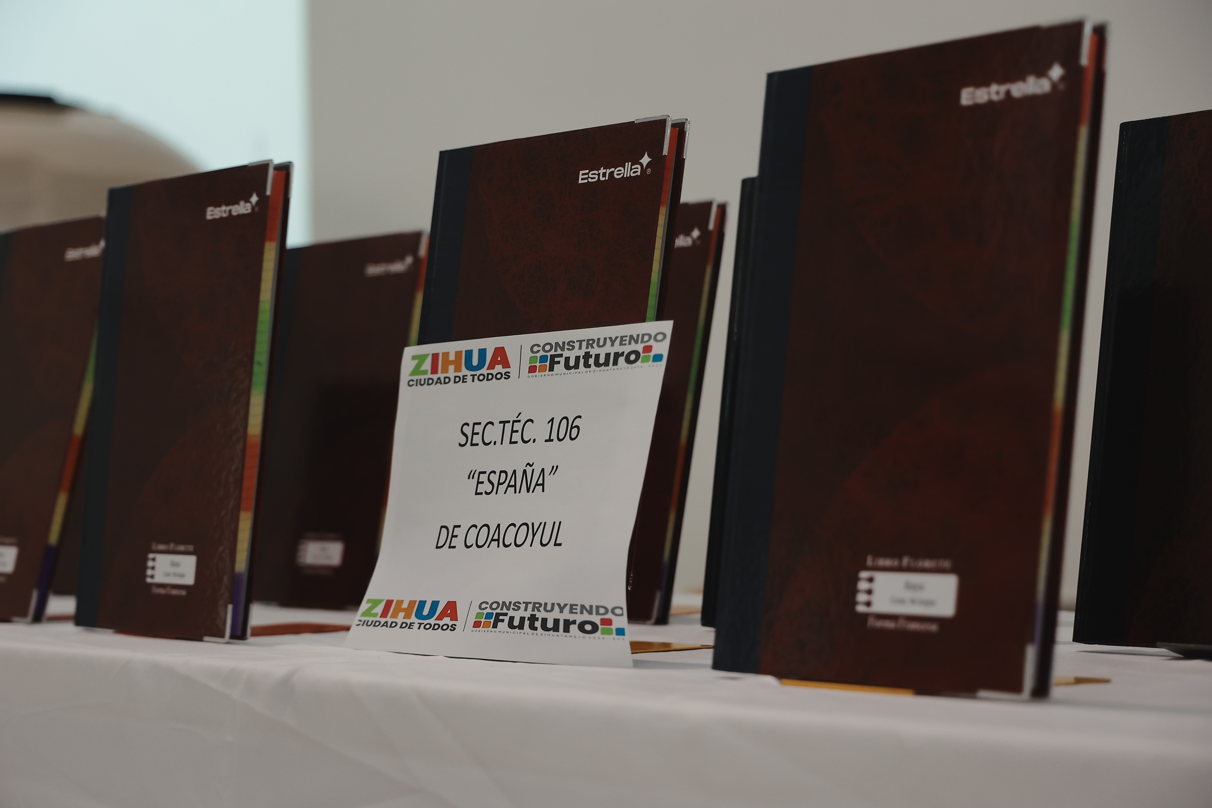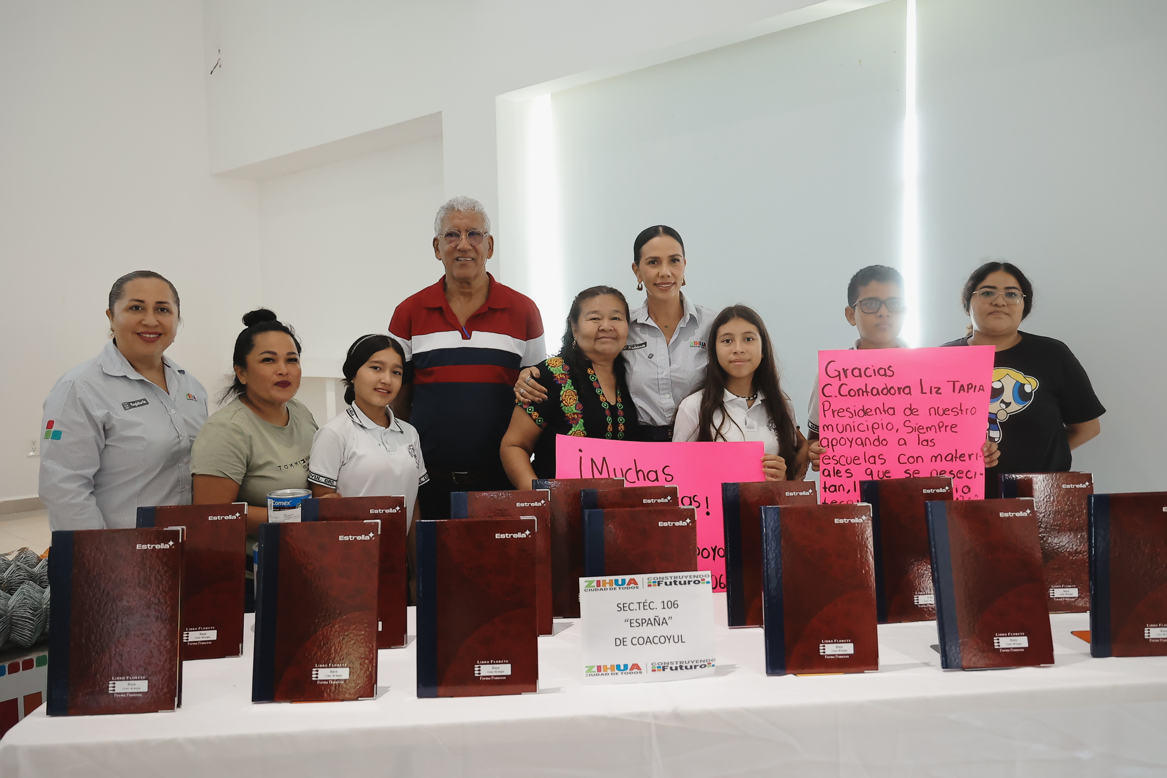 Durante el evento realizado en el Auditorio Zihua, la regidora de Educación, Cultura, Deporte y Juventud, Mayra Liz Ruiz Pineda, informó que las escuelas beneficiadas fueron la Secundaria Técnica España de El Coacoyul, Secundaria Luis Donaldo Colosio de Los Almendros, Jardín de Niños Arquímedes, Primaria Cuauhtémoc, Jardín de Niños Benito Juárez, Primaria Guillermo Prieto y la Telesecundaria Juan Escutia, que recibieron bitácoras para incidencias, rollos de malla ciclónica, enseres de cocina y un tinaco para almacenamiento de agua.