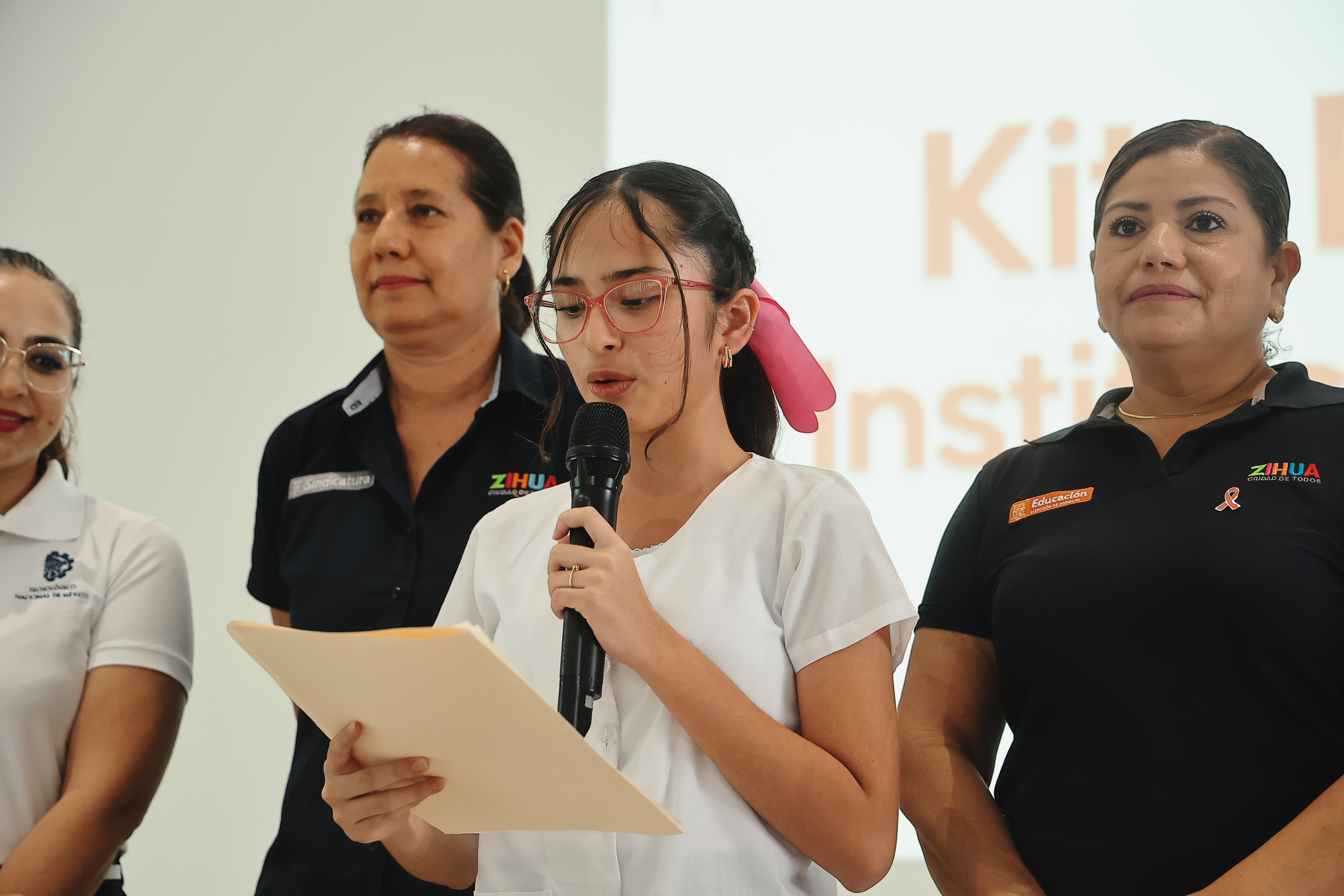En su mensaje, la presidenta Tapia Castro agradeció a todo el sector escolar por su participación en el pasado desfile del 20 de noviembre, en el que las y los jóvenes estudiantes mostraron habilidades artísticas y físicas. Agregó que esta entrega es un pequeño reconocimiento distribuido entre todas las escuelas con un kit de artículos deportivos. Los invitó a sumarse a todas las actividades que se organizarán el próximo año y adelantó que el municipio será sede de la Olimpiada de Matemáticas II, concurso de poesía, de oratoria, la Feria Internacional del Libro y diversas actividades para fortalecer la educación de niñas y niños.