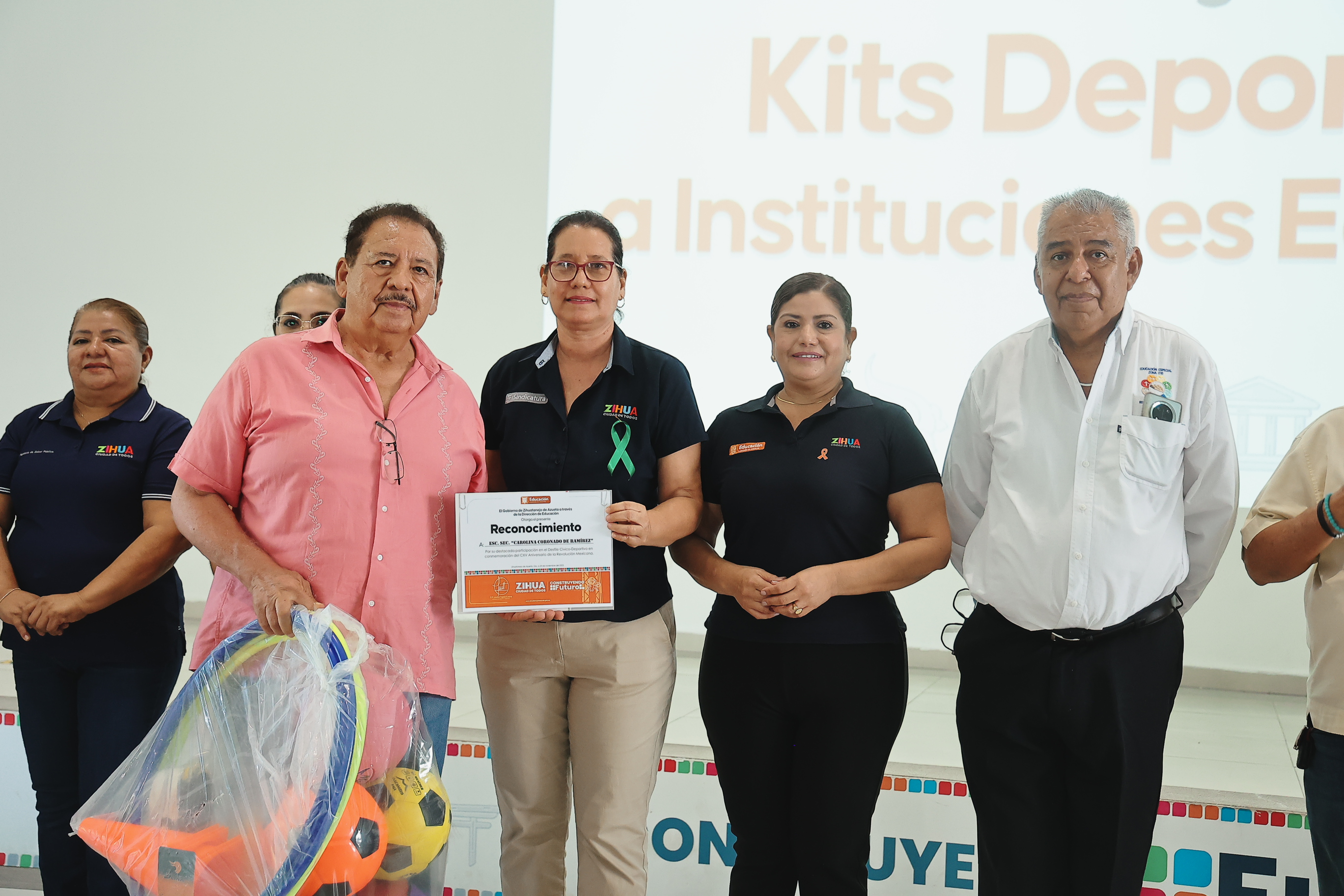 Continuando con su plan de apoyo al sector educativo, la presidenta Lizette Tapia Castro, a través de la Dirección de Educación a cargo de la maestra Ada Ninivet Galeana González, realizó la entrega de reconocimientos y material deportivo consistente en accesorios para diferentes disciplinas, además de balones para voleibol y basquetbol que son utilizados en las clases de educación física.