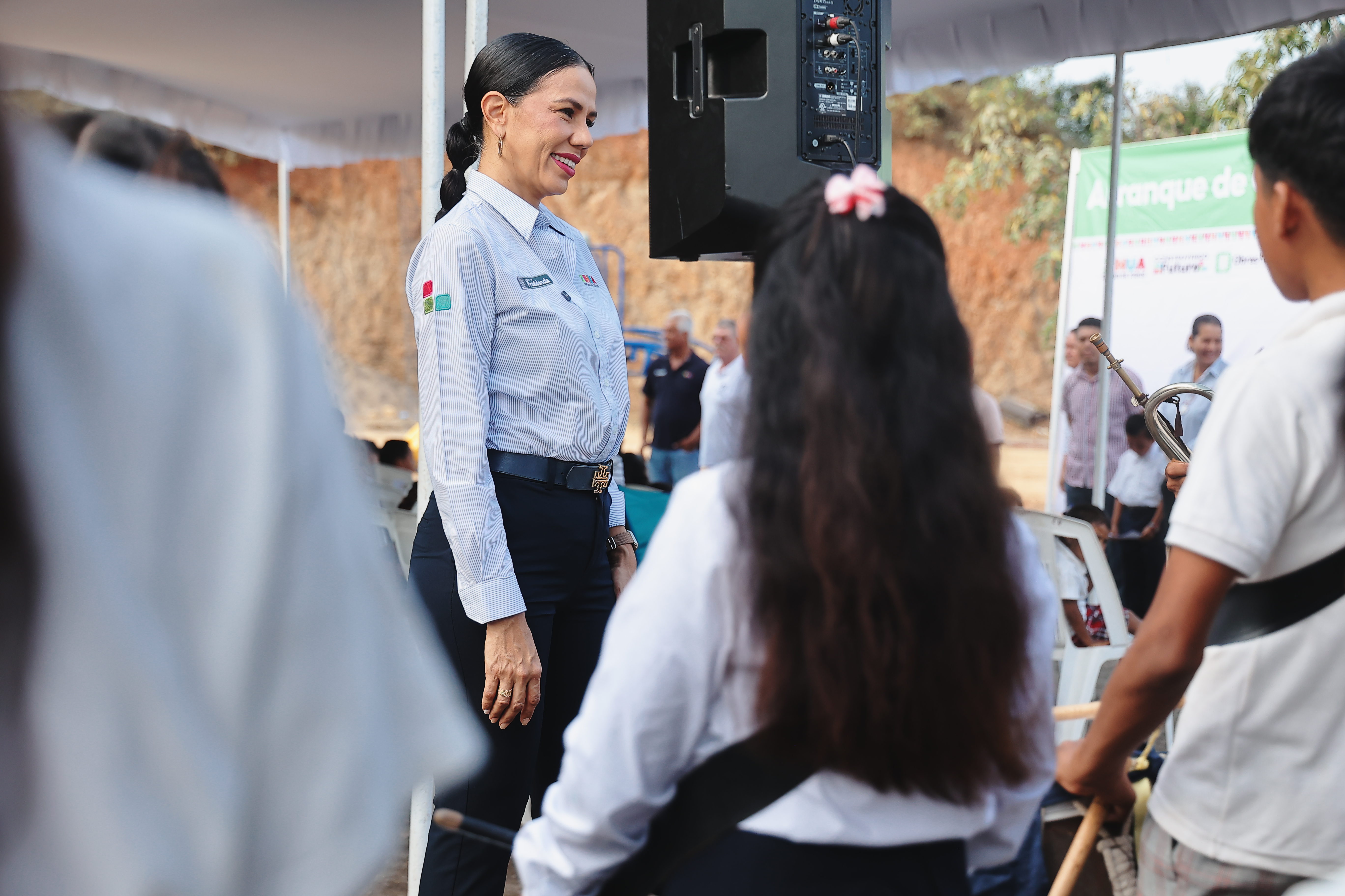 Al tomar la palabra, la presidenta municipal señaló el gran beneficio que esta obra representa para las niñas y los niños de esta parte del municipio, quienes, sin tener que desplazarse, reciben la educación que necesitan.