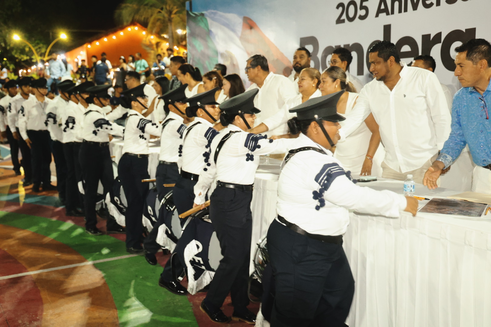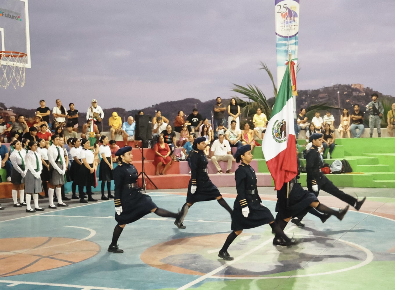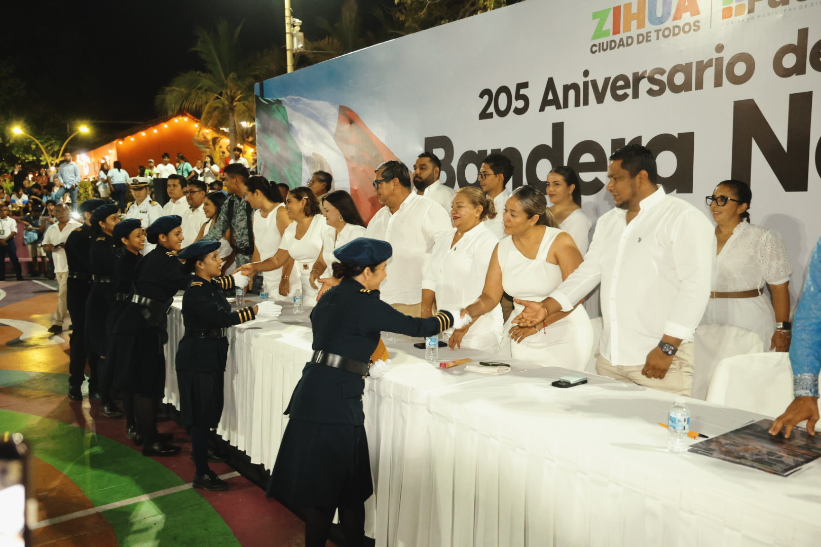 El abanderamiento fue encabezado por la primera síndica, Guadalupe García David, con la representación oficial de la presidenta Lizette Tapia Castro, autoridades militares, educativas, integrantes del Cabildo y directores del Gobierno Municipal.