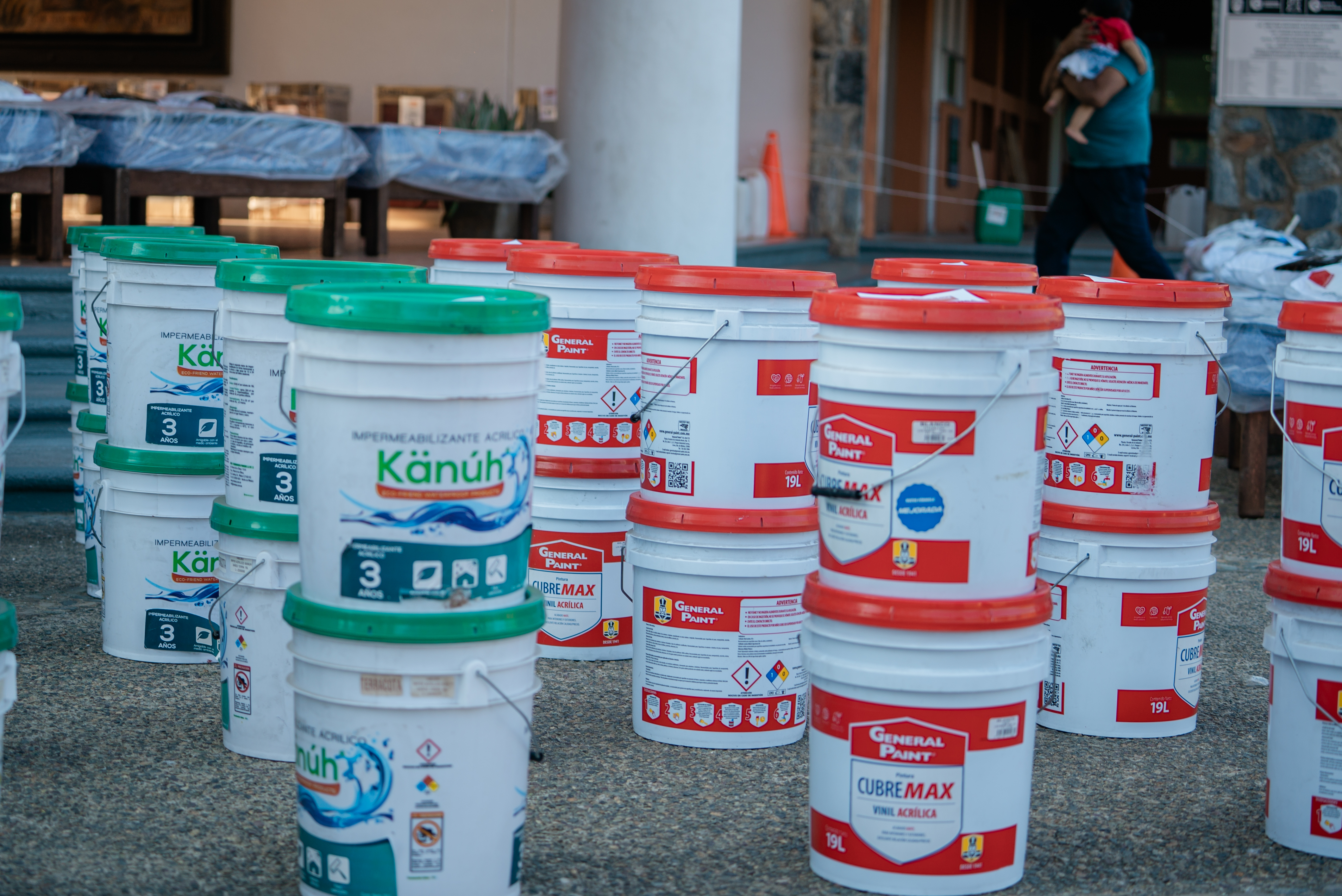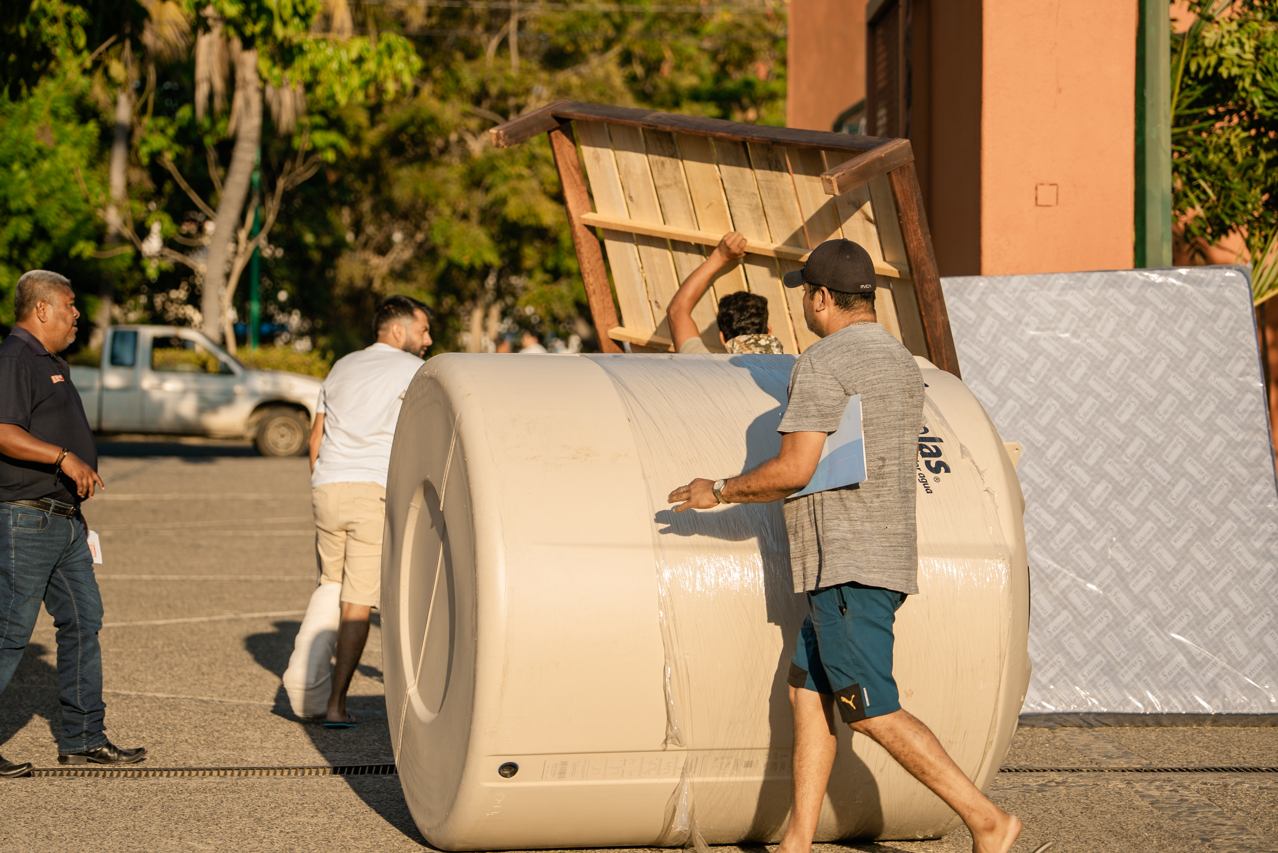 Se entregaron paquetes de cemento, malla ciclónica, tinacos de 1,100 y 2,250 litros, tambos azules de 200 litros, impermeabilizante, pintura blanca, WC y lavabo, camas individuales y matrimoniales con colchón, lavadoras y estufas; además de que en esta ocasión ya se entregaron paquetes de loseta para piso de 30x30.