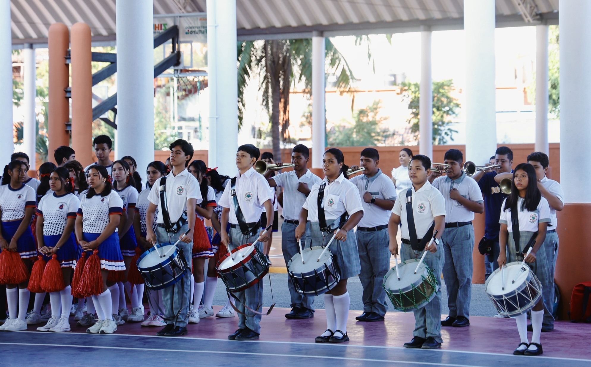 A todas las alumnas y los alumnos congregados en las canchas techadas de la Unidad Deportiva, les pidió que disfruten al máximo su participación en estos Juegos Deportivos Escolares, a los que llamó “El Mundialito”.