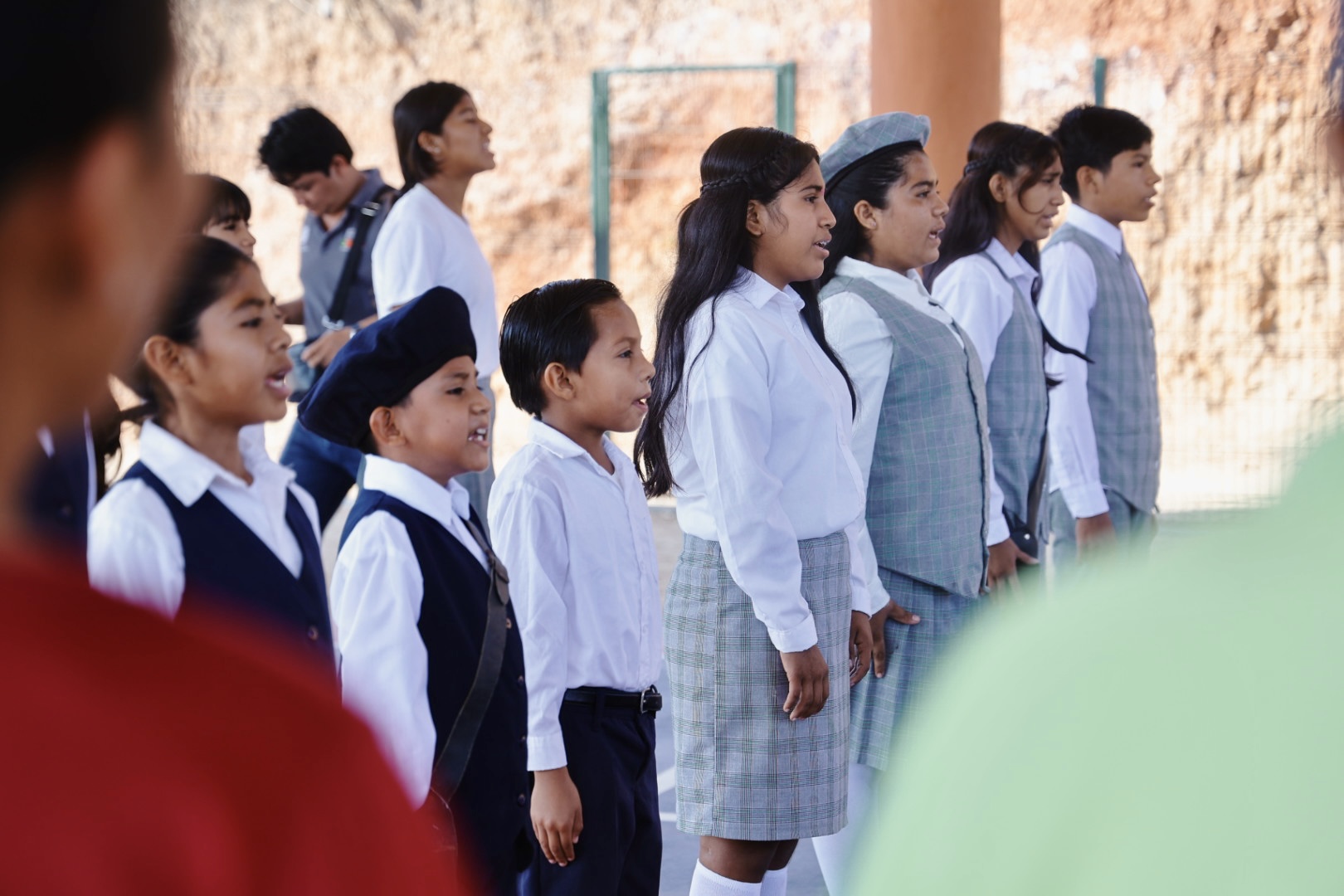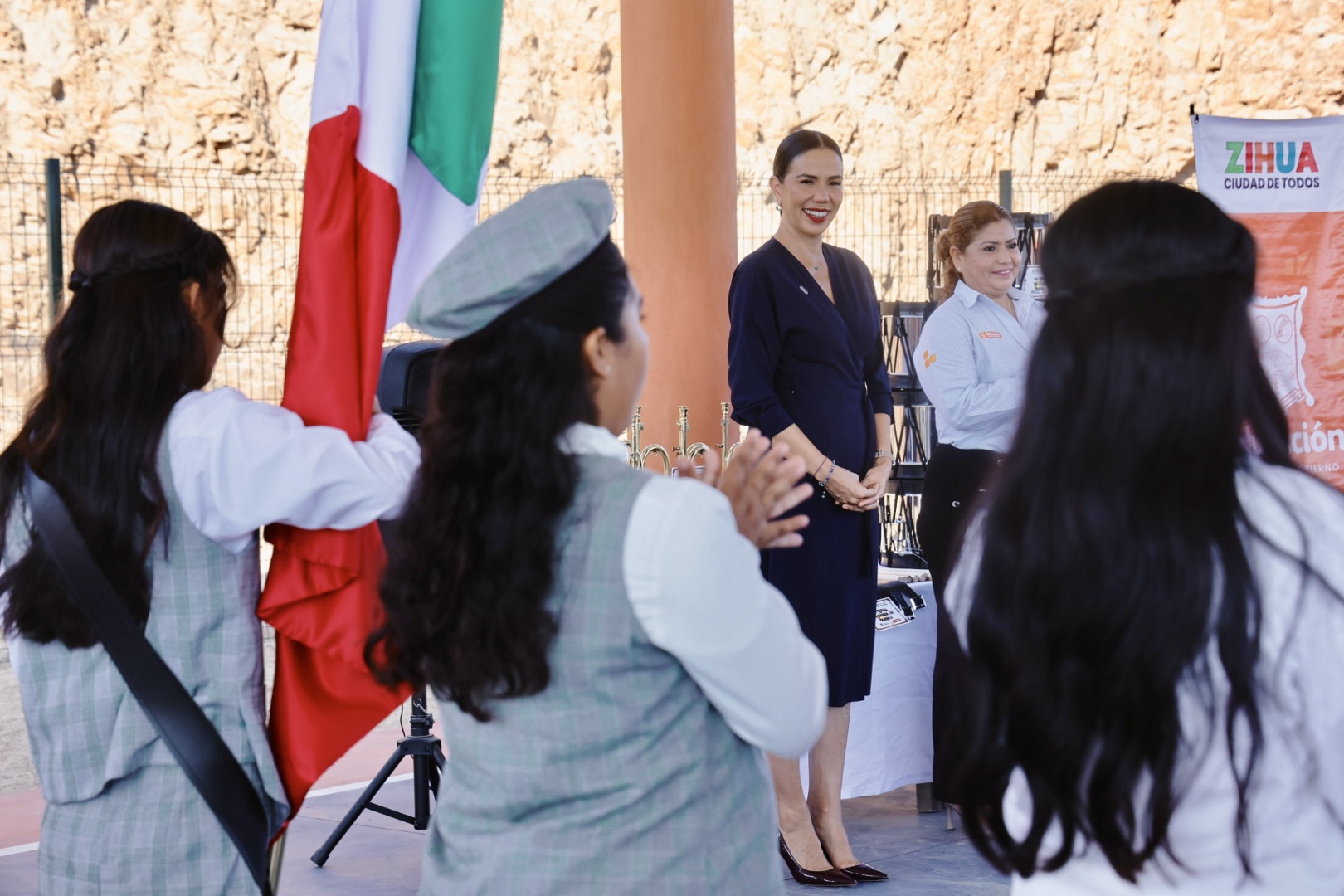 Enseguida, la presidenta Tapia Castro expresó que “yo hice un compromiso con ustedes de fortalecer su Banda de Guerra; hoy saludo a sus papás y a todas las personas que ayudan a esta escuela, a todos quienes colaboran de una manera tan generosa”.
