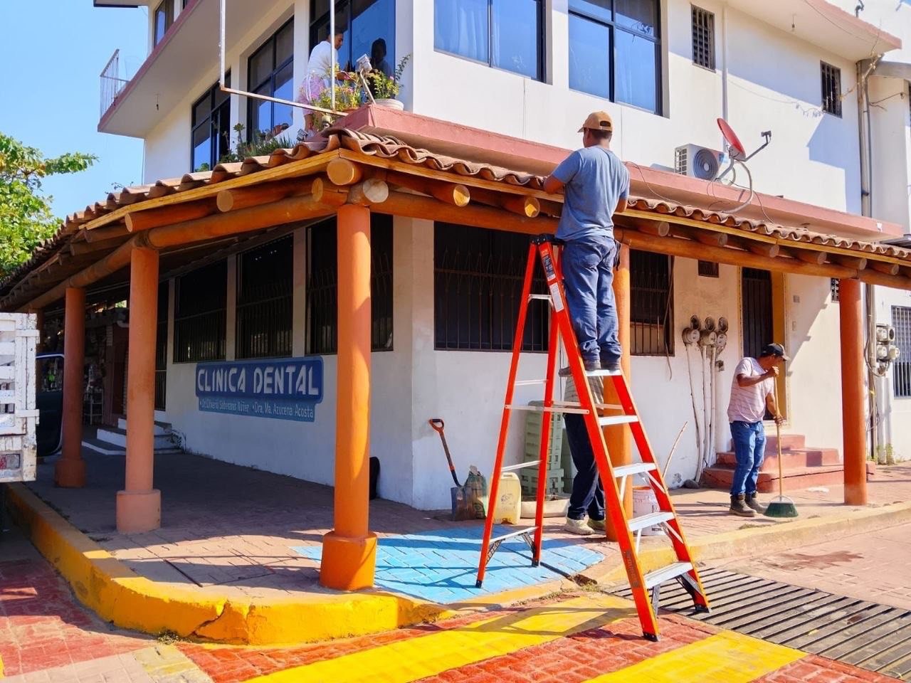 Atendiendo la petición de los comerciantes de la plaza comercial El Cortijo, ubicada en la Av. Heroico Colegio Militar, en el centro de Zihuatanejo, Lizette Tapia Castro, a través de la Dirección de Mejoramiento Urbano, a cargo de Kristian Palacios Pineda, giró instrucciones para realizar la remodelación de la fachada de esta plaza que alberga comercios de distintos giros.