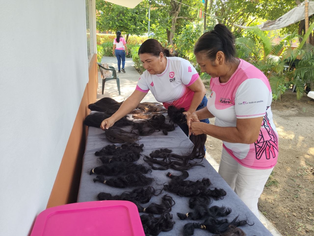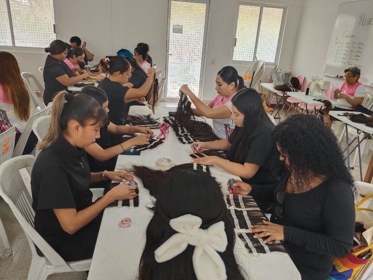 Al respecto, la coordinadora de los Centros de Desarrollo Comunitario (CDC) del DIF, Dora Luz Díaz Gutiérrez, informó que el proceso de elaboración de estas pelucas se inició la semana pasada, destacando que en esta loable labor participan de forma entusiasta las maestras de corte y confección, así como de belleza, que trabajan para dichas áreas del Sistema Municipal para el Desarrollo Integral de la Familia.