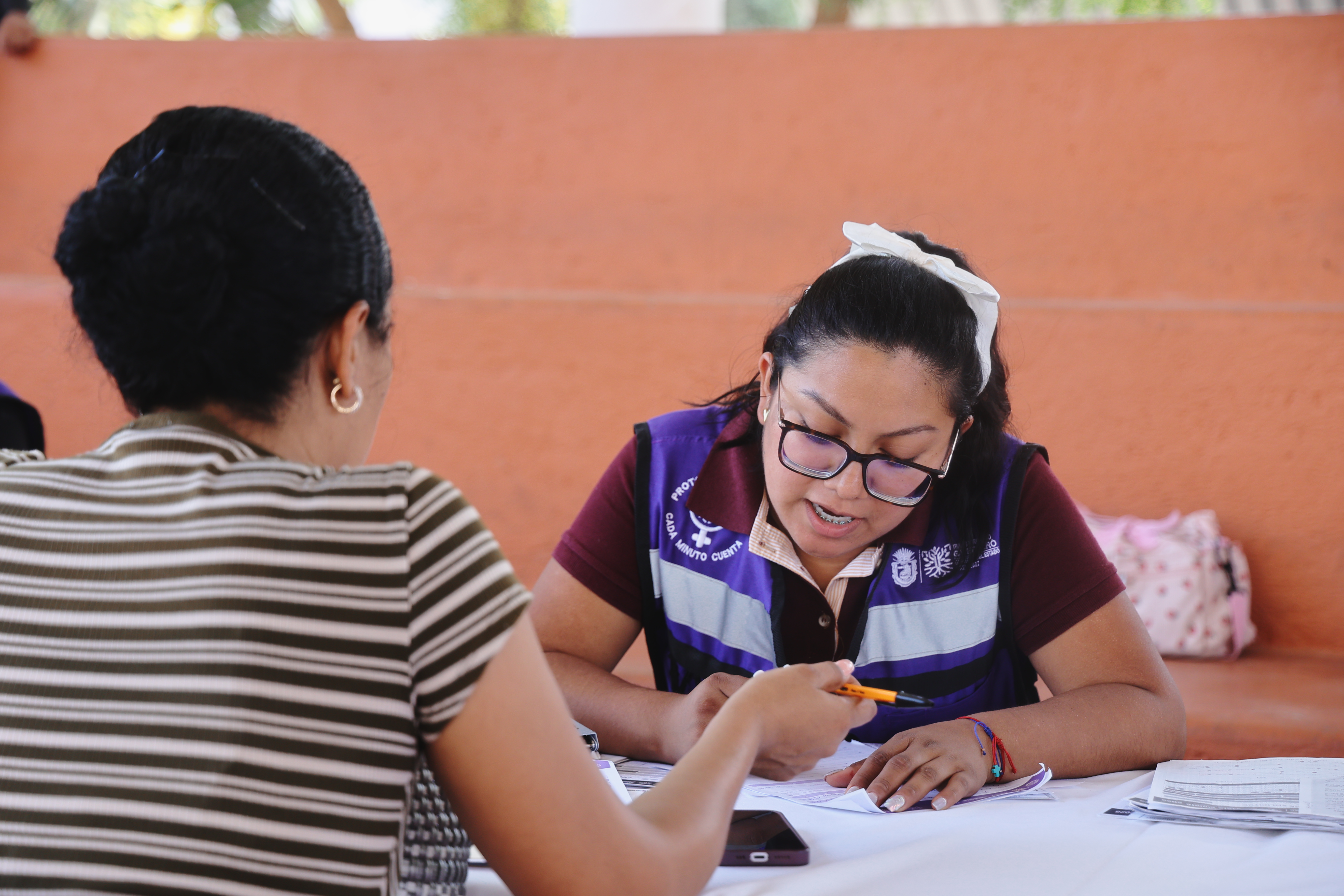 Mientras que el titular de la Secretaría de Bienestar, Pablo André Gordillo Oliveros, agradeció las facilidades otorgadas por la alcaldesa Tapia para llevar a cabo el registro de beneficiarias de la Tarjeta Violeta 2026, destacando que con este apoyo muchas mujeres podrán concluir sus estudios de primaria, secundaria y preparatoria, además de participar en los cursos de capacitación que se van a impartir.