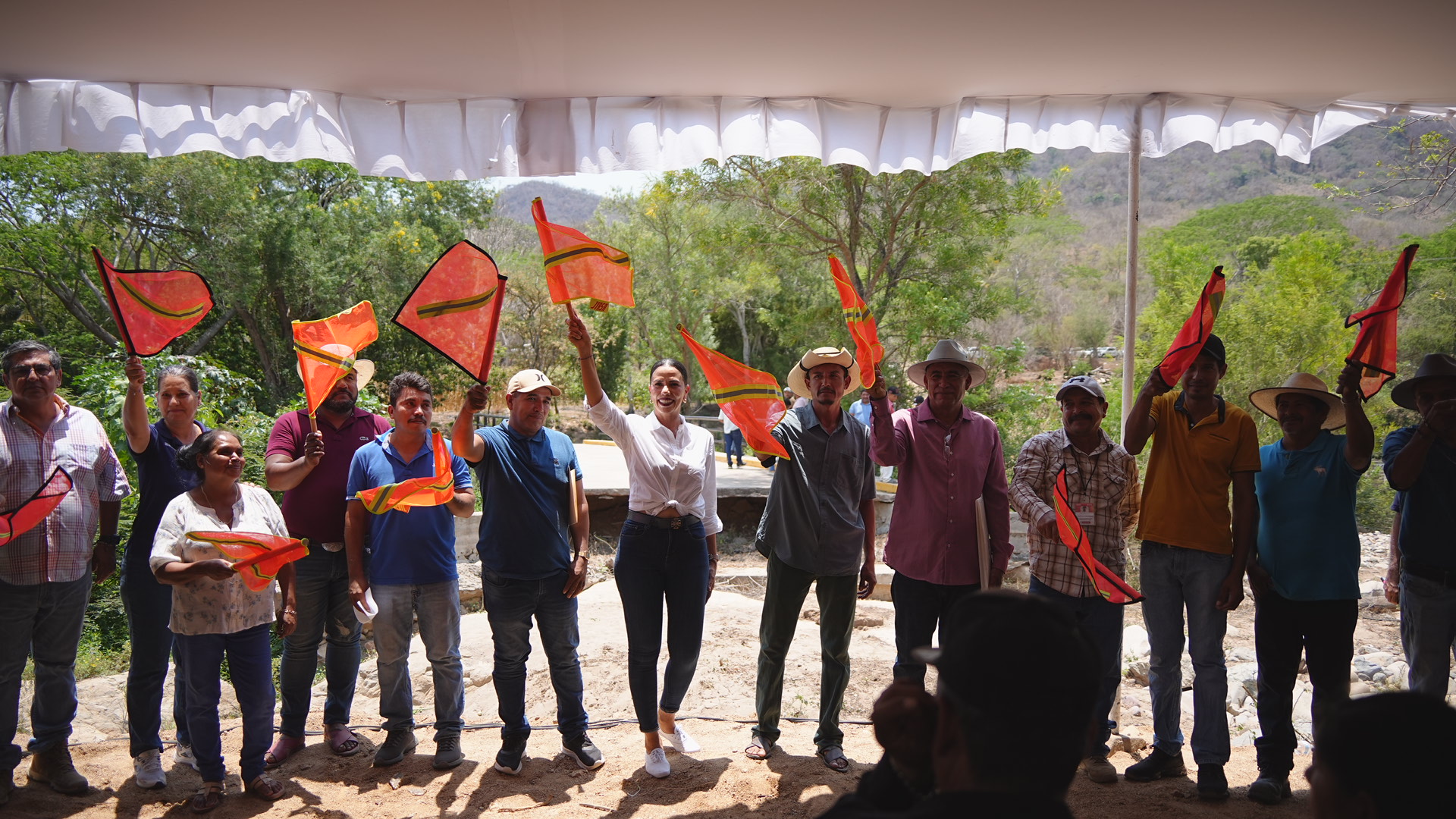 En breve pero productiva gira de trabajo por la sierra del municipio, la presidenta Lizette Tapia Castro llegó a la comunidad del Plan de los Hernández para dar banderazo a la rehabilitación del puente vado en el acceso a la mencionada comunidad.