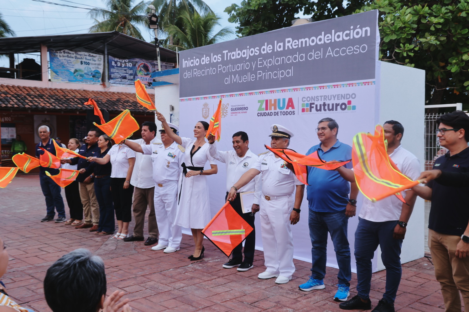En lo que significará un cambio total a la imagen que por años ha tenido el recinto portuario, este lunes la presidenta Lizette Tapia Castro acudió al muelle de Zihuatanejo, acompañada de integrantes de su cabildo, el diputado Alejandro Bravo Abarca y las autoridades militares de la zona naval, encabezadas por el vicealmirante Anselmo Osorio Fraga, para dar el banderazo de arranque a la remodelación del recinto portuario y la explanada de acceso al muelle principal.