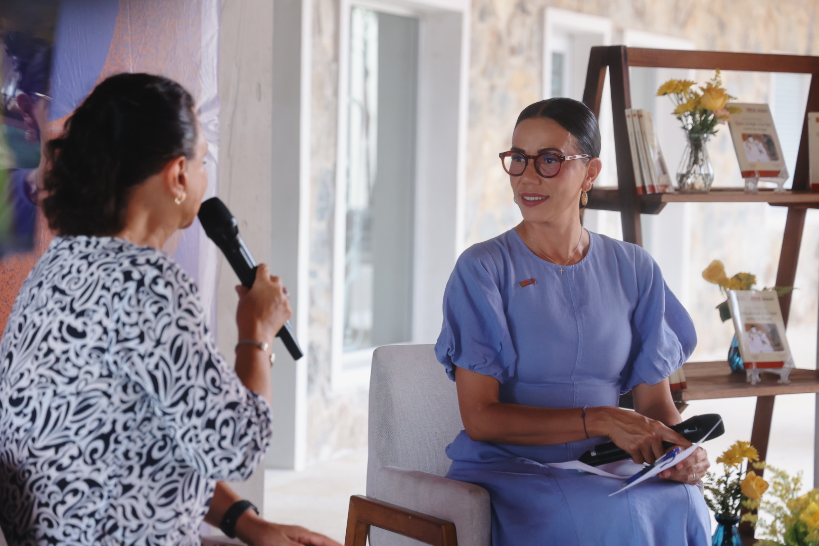 Al actuar como moderadora en la presentación, tuvo una interacción con la maestra Carmen Fernández Cáceres, directora general de Centros de Integración Juvenil A.C., con quien entabló un diálogo con mucha claridad sobre el tema del libro.