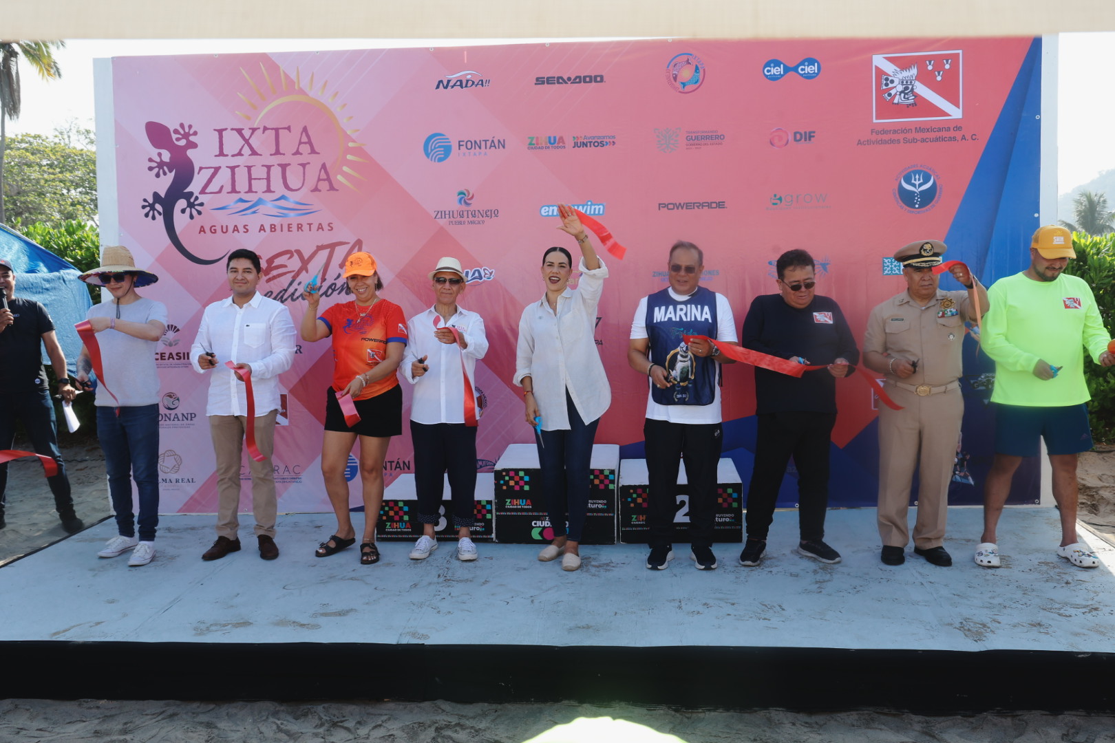 De manera simultánea en la Playa El Palmar de Ixtapa, Tapia Castro sonó el silbato de arranque de salida de la 6ª edición de Ixta-Zihua Aguas Abiertas 2026.